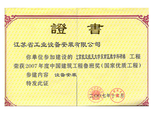 北京航空航天大學(xué)東南區(qū)教學(xué)科研樓工程建筑面積廣,構(gòu)造復(fù)雜,是江蘇省安在北京地區(qū)的又一標(biāo)志性工程,獲得2007年度“魯班獎(jiǎng)”。