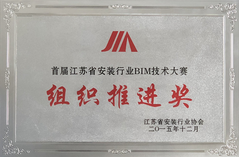 首屆江蘇省安裝行業(yè)BIM大賽組織推進獎
