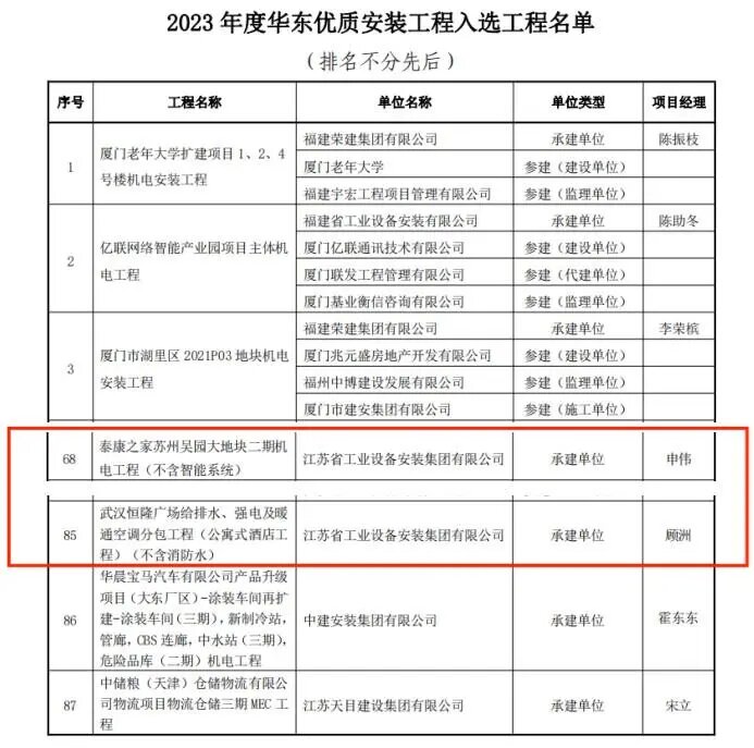 “2023年度華東優(yōu)質(zhì)安裝工程”評(píng)選活動(dòng)中,我司泰康之家蘇州吳園大地塊二期機(jī)電工程、武漢恒隆廣場(chǎng)給排水、強(qiáng)電及暖通空調(diào)分包工程兩項(xiàng)工程榜上有名。