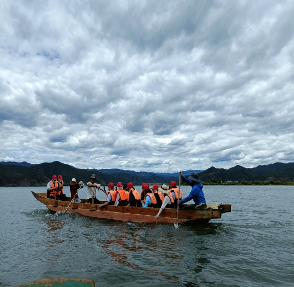6月19日,大家來(lái)到了因走婚而聞名的瀘沽湖,又一次感到了震撼。藍(lán)天、白云、蕩漾的湖水、偶爾飛起落下的或者在嬉戲或者在覓食的水鳥(niǎo),美得令人嘆息,任是學(xué)富五車(chē),也無(wú)法用言語(yǔ)表達(dá)此境美好之一。置身此景中,人瞬間便有了放空的感覺(jué),就這一刻,只想發(fā)發(fā)呆,看湖波蕩漾,觀云卷云。